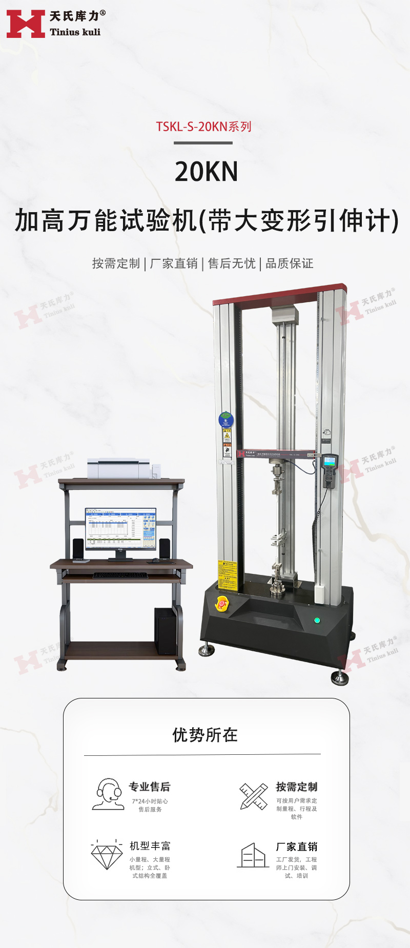 20KN加高萬能試驗機(帶大變形引伸計),雙柱拉力機