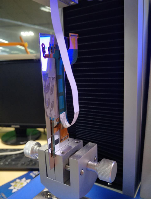 3、將TESA 7475膠帶自由端呈180度方向夾在上夾具上;