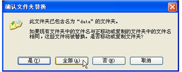 單擊”全部(A)”按鈕,覆蓋新版本軟件的”data”文件夾的所有內容