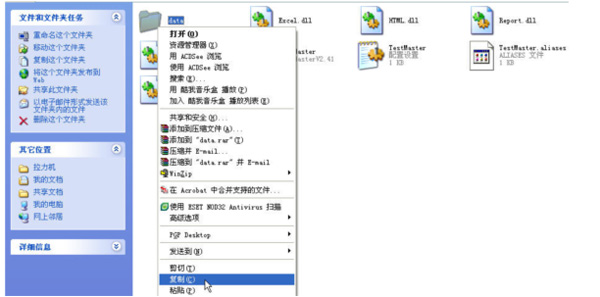 3.鼠標右鍵單擊老軟件文件夾中的”data”文件夾,左鍵點擊”復制”選項,如下圖所示: