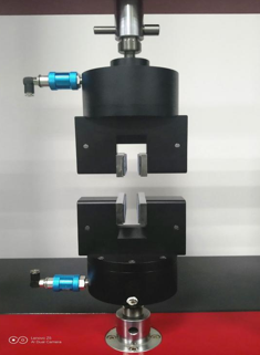 拉力試驗機夾具的正確使用方式應該是,在試件的夾持長度與夾具齒面長度相同時,先借助外力推動鉗口,使其在夾持面上產生初始摩擦力,再通過試驗機橫梁的移動對試樣加載,摩擦力拉動鉗口(楔形口)時由于斜面的作用,軸向拉力越大,產生的夾持力也越大,試驗機夾具體上有兩個斜面的楔形口正是依據上述夾持方式,按照接受均勻壓應力設計的。但是,有些操作人員并沒有按照試驗機的使用要求進行操作,試樣夾持長度較短,或者是試樣加工的就太短,造成楔形口斜面受力不均,楔形口局部應力遠遠超過材料的屈服強度,從而使楔形口產生塑性變形、嚴重外翻,使楔形口斜面塌陷或磨損。夾具在這種情況下繼續使用,減小了楔形口的角