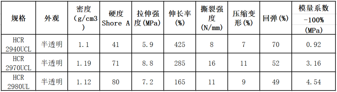 在低壓縮永久變形硅膠中產品主要有HCR 2940U / HCR 2970U 其主要優點有: