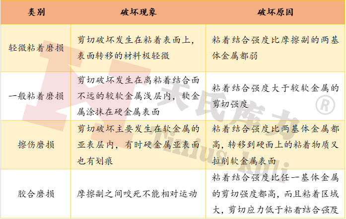 當摩擦副相對滑動時, 由于粘著效應所形成結點發生剪切斷裂,被剪切的材料或脫落成磨屑,或由一個表面遷移到另一個表面,此類磨損稱為粘著磨損。