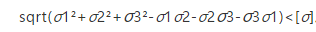 只要最大切應(yīng)力τmax達(dá)到單向應(yīng)力狀態(tài)下的極限切應(yīng)力τ0,材料就要發(fā)生屈服破壞。τmax=τ0。依軸向拉伸斜截面上的應(yīng)力公式可知τ0=σs/2(σs為橫截面上的正應(yīng)力)由公式得:τmax=(σ1-σ3)/2。所以破壞條件改寫為σ1-σ3=σs。按第三強(qiáng)度理論的強(qiáng)度條件為:σ1-σ3≤[σ]。