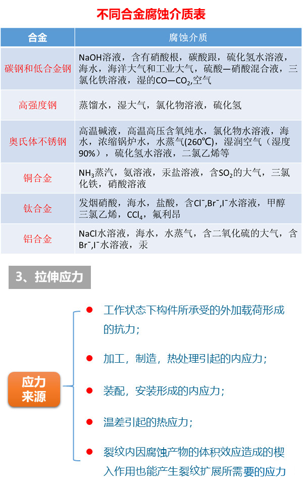 材料、機械零件或構件在靜應力(主要是拉應力)和腐蝕的共同作用下產生的失效現象。它常出現于鍋爐用鋼、黃銅、高強度鋁合金和不銹鋼中,凝汽器管、礦山用鋼索、飛機緊急剎車用高壓氣瓶內壁等所產生的應力腐蝕也很顯著。