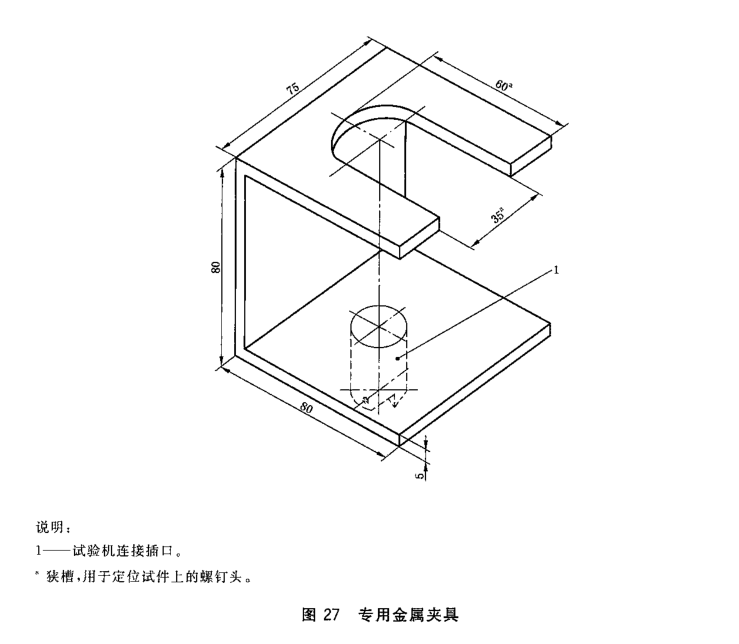 夾具數(shù)量:上夾具體一只,下夾具體一只,專用卡頭一個,開孔鋼墊片一個,鋼板一塊,共5個件(下夾具體可與方法一共用)。