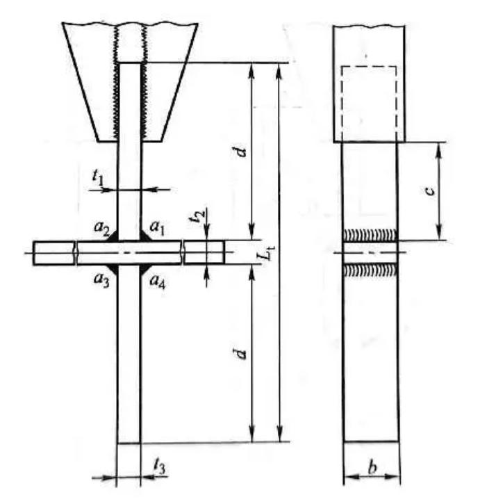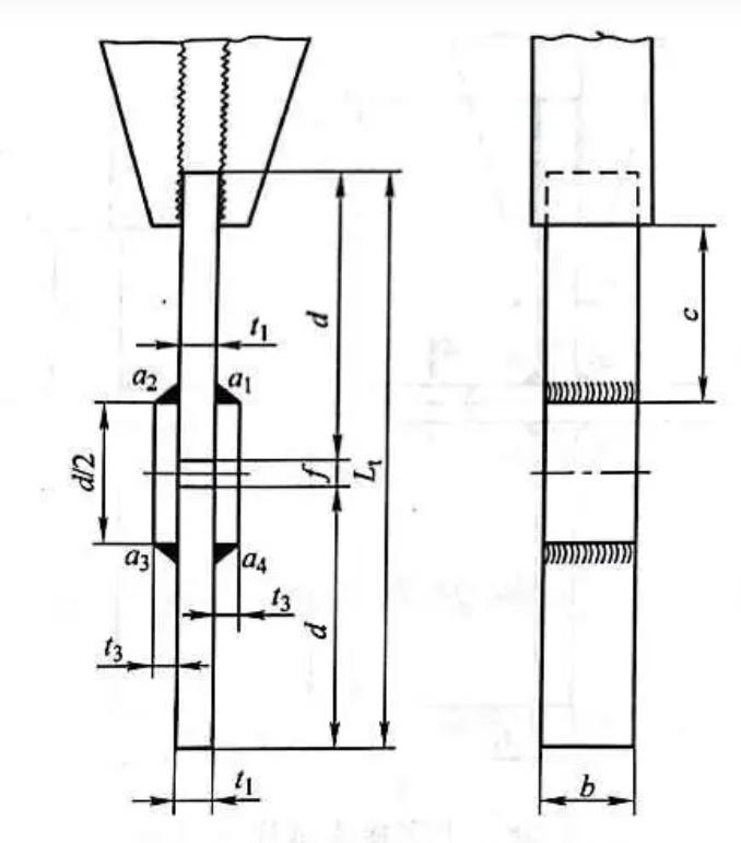 2)十字接頭試樣的尺寸應符合圖2-58的規定。