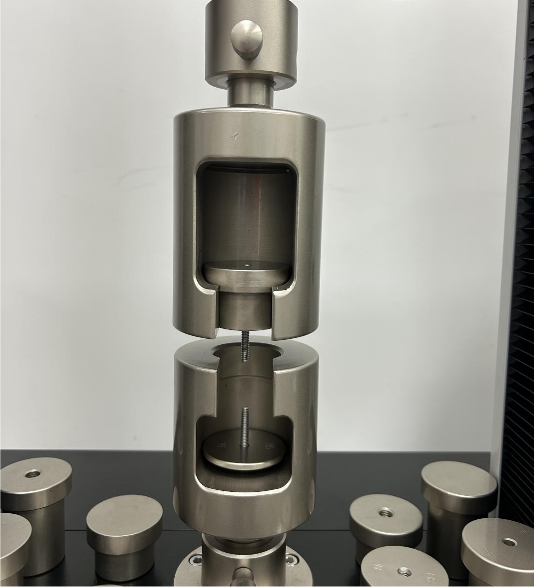 螺栓拉伸夾具: 專為螺栓、螺柱等試樣的軸向拉伸測試而設計。夾具由高強度合金鋼制成,通過一系列不同規格的套筒和墊塊組合,可適配多種螺栓頭部型式(如六角頭、內六角頭)和螺紋直徑。其核心優勢在于能夠將拉伸力精準地傳遞至螺栓軸向,有效避免彎曲應力,保證測試數據的準確性。