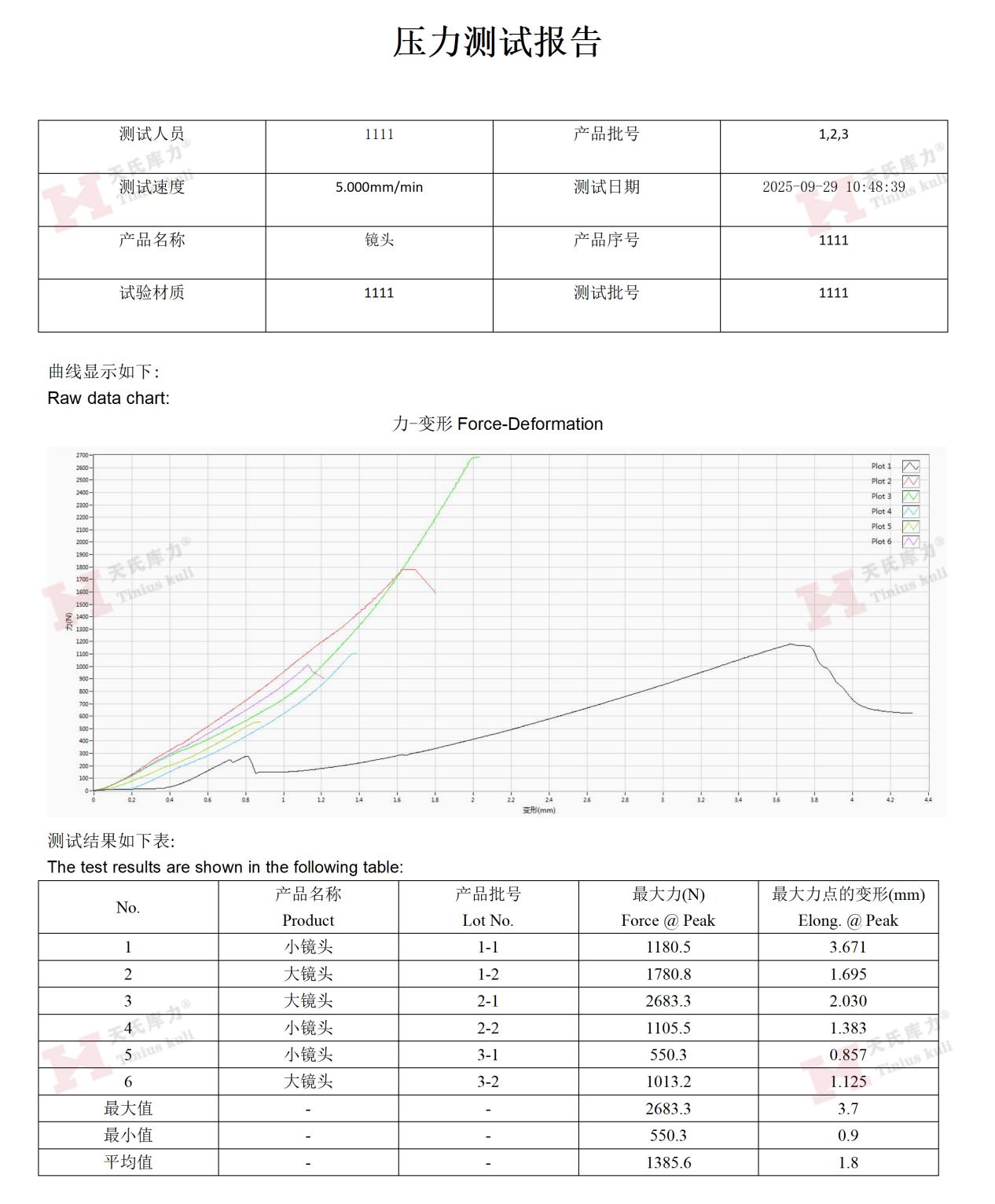 設計專用的測試夾具,其核心是一個能與鏡頭輪廓完美匹配的仿形壓頭,以確保推力能均勻垂直地施加于鏡頭中心軸線。
