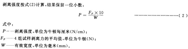 在規(guī)定的試驗(yàn)條件下,將粘扣帶有效閉合區(qū)域從開(kāi)口一端剝離分開(kāi)每單位有效寬度所需要的力。